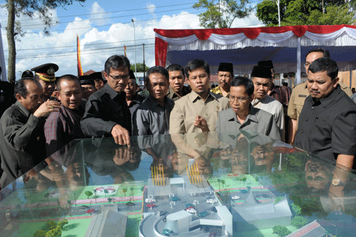Gubernur Sumatera Barat Irwan Prayitno ketika peresmian peletakan batu pertama pembangunan gedung parkir, di Kota Bukittinggi, Senin sore (28/5).