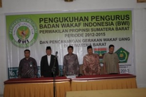 Hal ini disampaikan Gubernur Sumatera Barat ketika memberikan sambutan pada acara Pengukuhan Pengurus Badan Waqaf Indonesia (BWI) Perwakilan Provinsi Sumatera Barat Periode 2012-2015 serta Pencanangan Gerakan Waqaf Uang di Sumatera Barat. Acara ini dilaksanakan di Auditorium Gubernur Sumatera Barat, Jum’at pagi , (25/5). Hadir dalam kesempatan tersebut  Kakanwil Kemenag Sumbar, Sekda Kota Padang, Pengurus BWI Pusat dan daerah, Perwakilan SKPD Prov. Sumbar dan perwakilan dari universitas-universitas di sumatera barat.