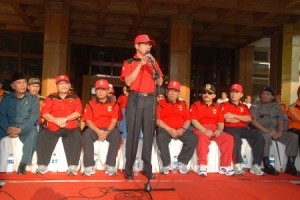 Padang – Gubernur Irwan Prayitno ikut melepas rombongan kontingen PON Sumatera Barat untuk bertarung pada PON XVIII tahun 2012 di Provinsi Riau, Jum’at pagi (7/9), di halaman Kantor Gubernur Sumatera Barat.