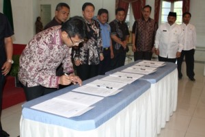Padang – Gubernur Sumatera Barat atas nama Pemerintah Provinsi Sumatera Barat melakukan Serah Terima Hibah antara Pemerintah Provinsi Sumatera Barat dengan Pemerintah Kabupaten Pasaman Barat, serta instansi vertikal melalui  penandatanganan Naskah Perjanjian Hibah Daerah, di Auditorium Gubernuran, Jum’at pagi (12/4).