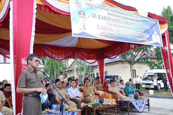 Lima Puluh Kota (12/11) – Gubernur Sumatera Barat menghadiri acara penyerahan dan penandatanganan kesepakatan bersama (MoU) dalam rangka Gerakan Optimalisasi Penyuluhan Pertanian, Perikanan, dan Kehutanan yang berlangsung di Kecamatan Situjuah Limo Nagari, Kabupaten 50 Kota. Penyerahan MoU tersebut dilakukan antara Gubernur Sumatera Barat dengan Kabupaten 50 Kota dan Kota Sawahlunto, Rabu (12/11).