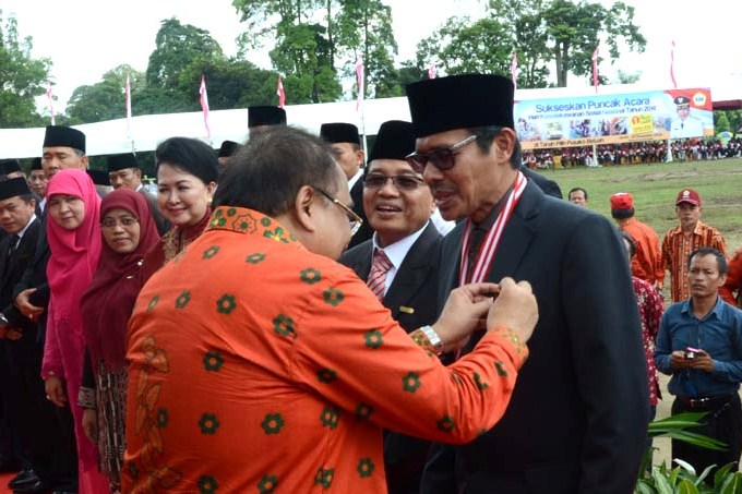 PADANG — Gubernur Sumatera Barat, Irwan Prayitno menerima penghargaan Satya Lencana Kebaktian Sosial dari Presiden. Penghargaan itu diserahkan Menko Kemaritiman, SDM dan LH Dwisuryo Indroyono Soesilo dalam rangkaian Peringatan Hari Kesetiakawanan Sosial Tingkat Nasional 2014 di Lapangan Paal Merah Baru, Kota Jambi, Sabtu (20/12).