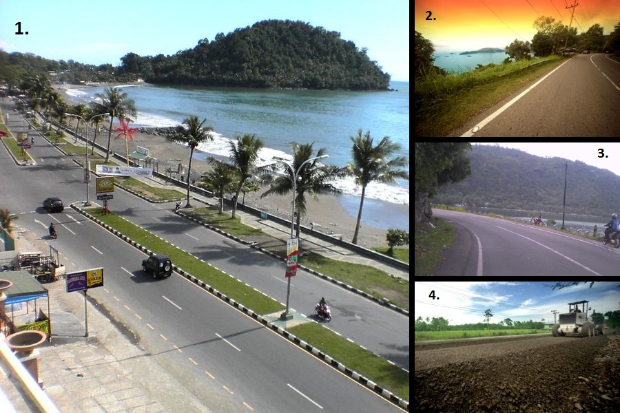 Gambar 1. Pantai Padang Kota Padang. Dikerjakan th 2010, selesai th 2012. Gambar 2 dan 3. Jalan Padang Painan. Dikerjakan th 2011, selesai th 2013. Gambar 4. Jalan Manggopoh (Agam) ke Simpang Empat (Pasaman Barat) dikerjakan sejak Desember 2013, insya Allah selesai  th 2015.
