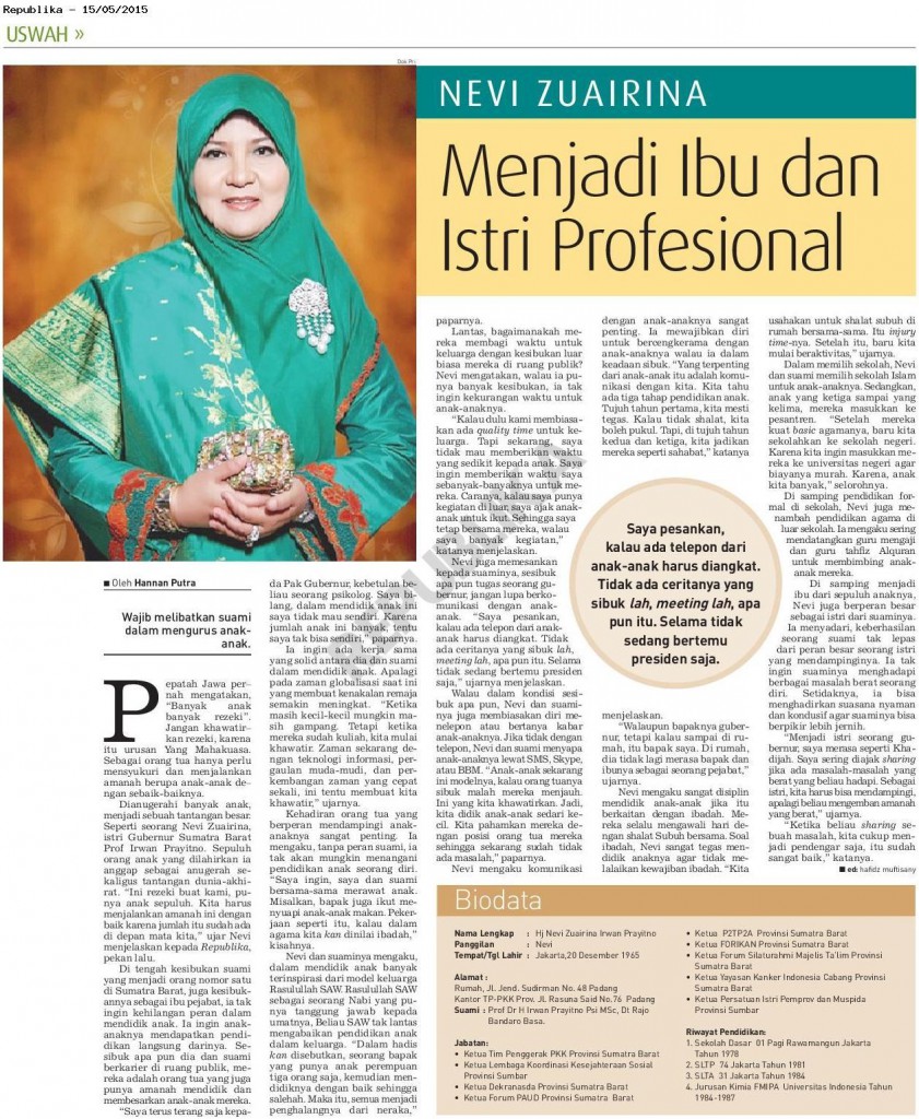 Nama Lengkap : Hj Nevi Zuairina Irwan Prayitno