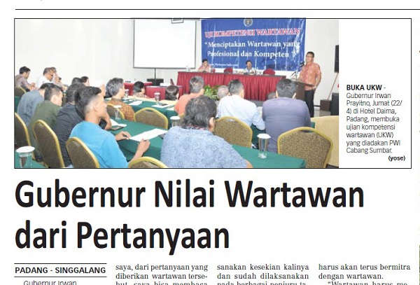 Gubernur Irwan Prayitno mengaku mudah sekali menebak wartawan berkompeten atau tidak. Menurutnya, wartawan dapat dinilai dari pertanyaannya, apakah sudah berkompeten.