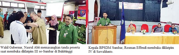 Sehari sebelumnya, Wakil Gubernur Sumbar, Nasrul Abit membuka Diklatpim III di aula Diklat Regional Kemendari di Bukittinggi yang diikuti oleh pejabat eselon III dab camat kabupaten/kota se-Sumbar.