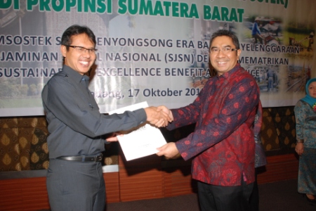 Salah satu dukungan nyata diberikan Gubernur Sumatera Barat Irwan Prayitno yang menerbitkan instruksi Nomor 4 Tahun 2012 yang meminta para kepala daerah di 19 kabupaten/kota se-Sumbar berperan aktif mendorong kepesertaan Jamsostek. “Instruksi Gubernur Sumbar ini bentuk dukungan pemerintah daerah terhadap upaya menambah jumlah masyarakat terutama pekerja formal yang menikmati perlindungan sosial.
