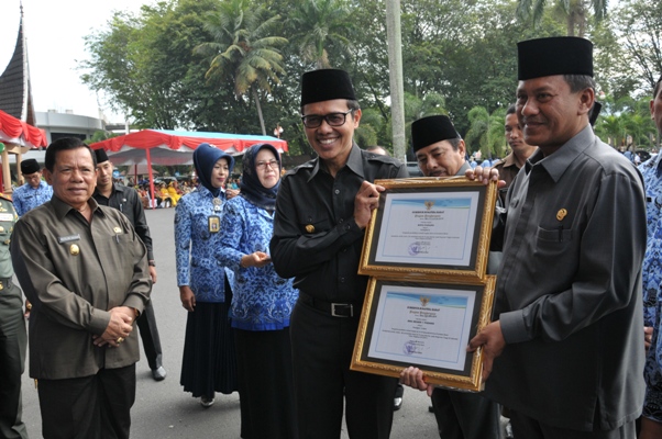Sebelum upacara selesai Gubernur Sumbar menyerahkan penghargaan kepada Bupati/Walikota dalam mengelola pendidikan (SMA). Penghargaan diberikan kepada kategori jumlah siswa yang diterima pada perguruan tinggi negeri. Untuk kota di Sumbar yang menerima penghargaan tersebut adalah Bukittinggi, Padang dan Padang Panjang. Tanah Datar, Solok dan Agam merupakan penerima penghargaan untuk Kabupaten di Sumbar.