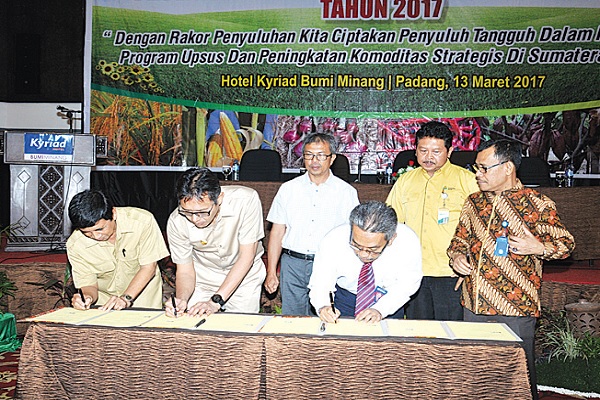 Pada kesempatan itu juga dilakukan MoU dengan sejumlah instansi. Seperti BPBD Sumbar, BPJS Ketenagakerjaan, Bulog Divre Sumbar, BPTP Sumbar, Bank Nagari, BRI, Pupuk Iskandar Muda dan Pupuk Petrokimia Gresik. Kerja sama tersebut untuk mendukung peningkatan produksi komoditas strategis Sumbar.